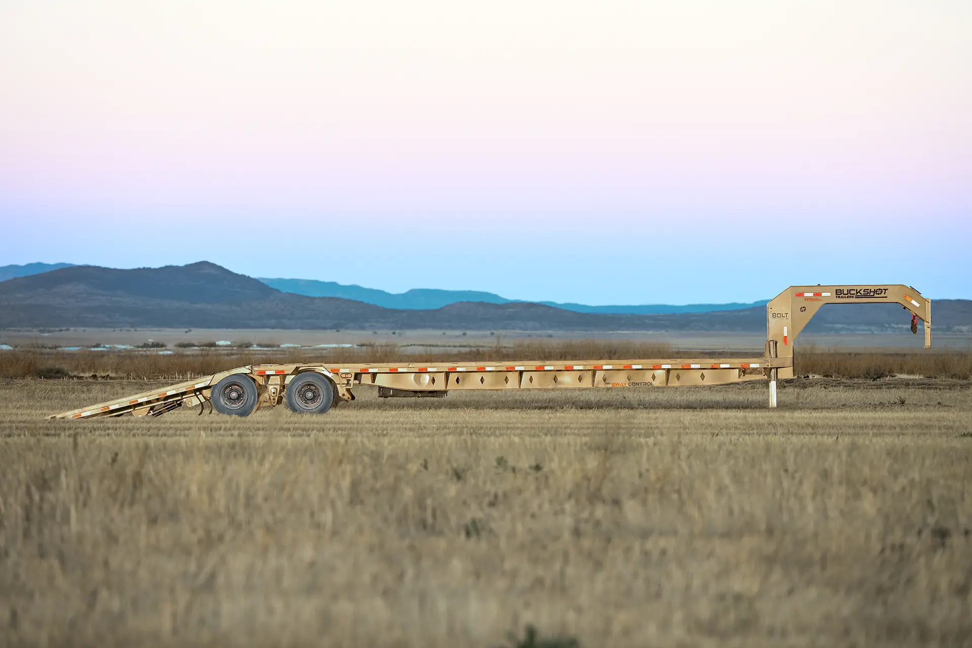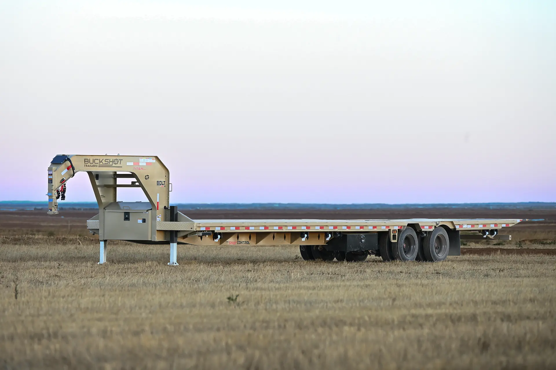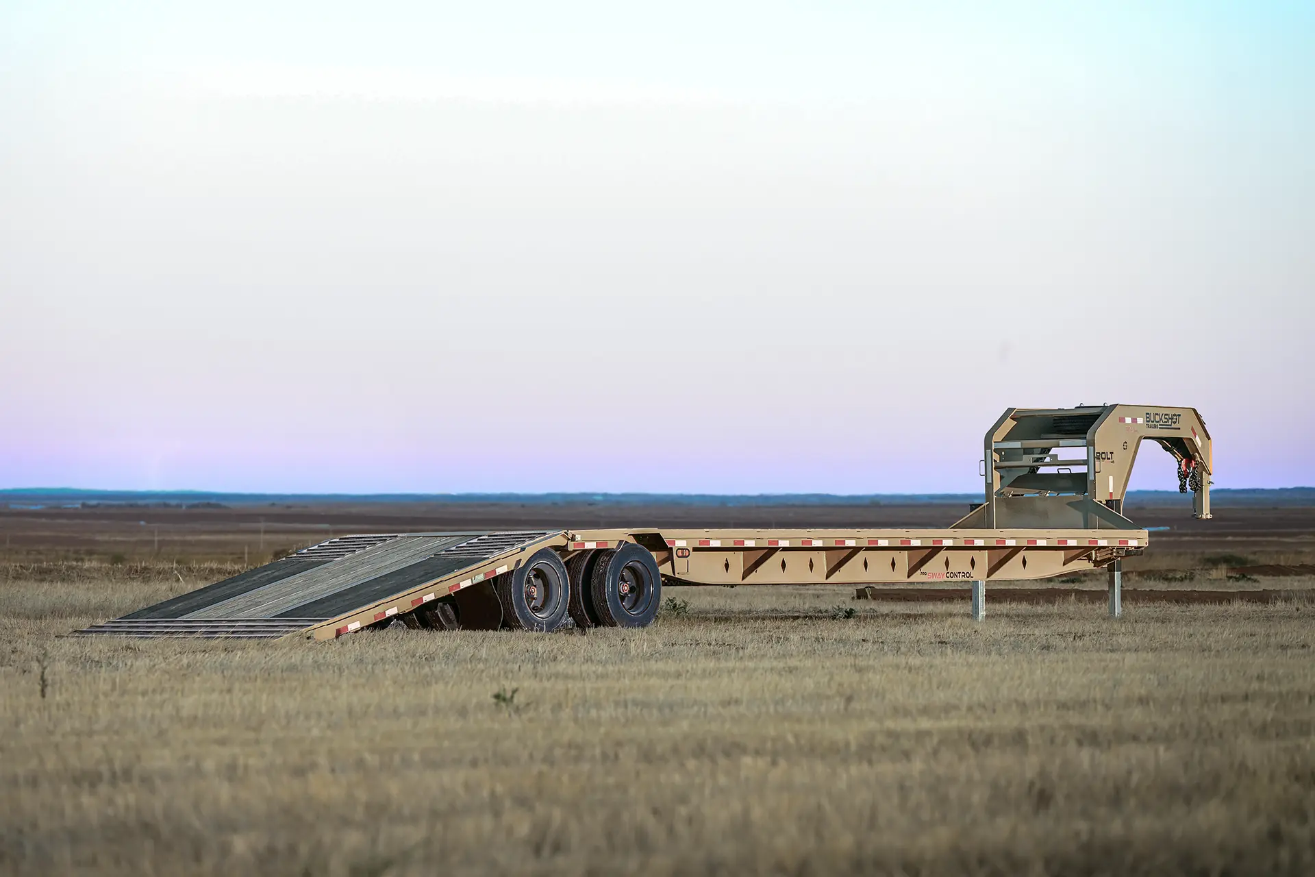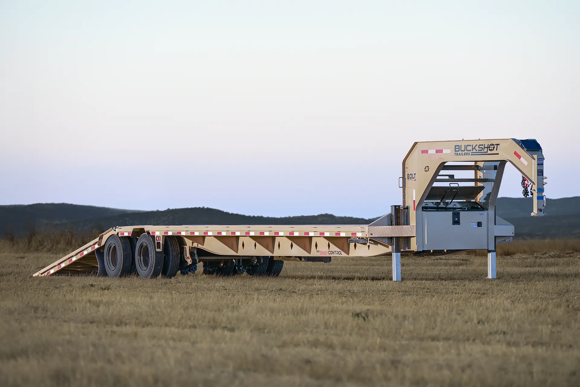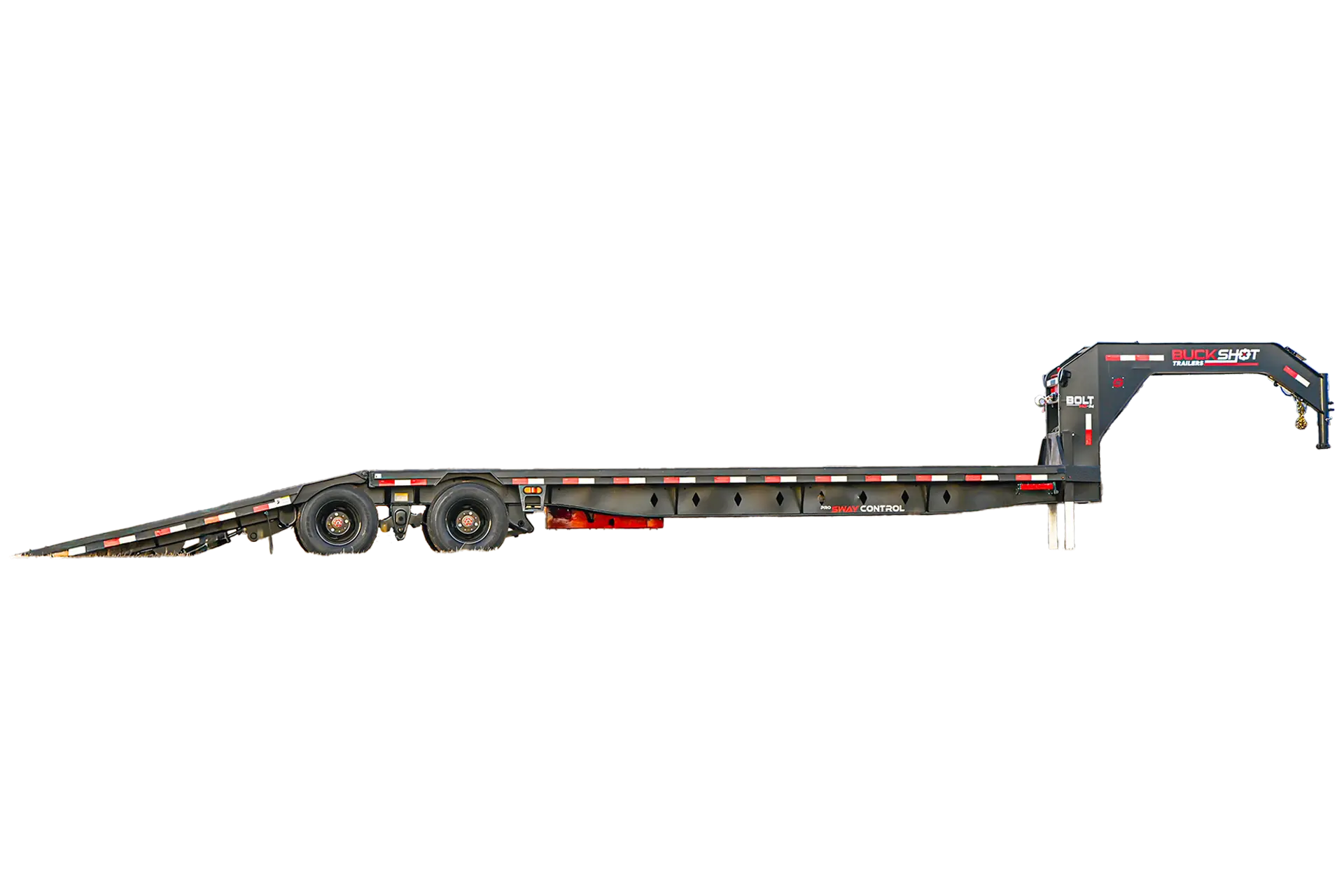 Introducing the Buckshot Titan Series BOLT HD, the standard of strength and innovation in the trailer industry. Constructed with a re-engineered 3/16 metal gooseneck and a heavy-duty engineered frame, this trailer delivers unmatched stability and performance for the toughest jobs. Its 34” deck height with a 1/4” diamond plate low-profile design ensures a durable and reliable platform for your cargo.